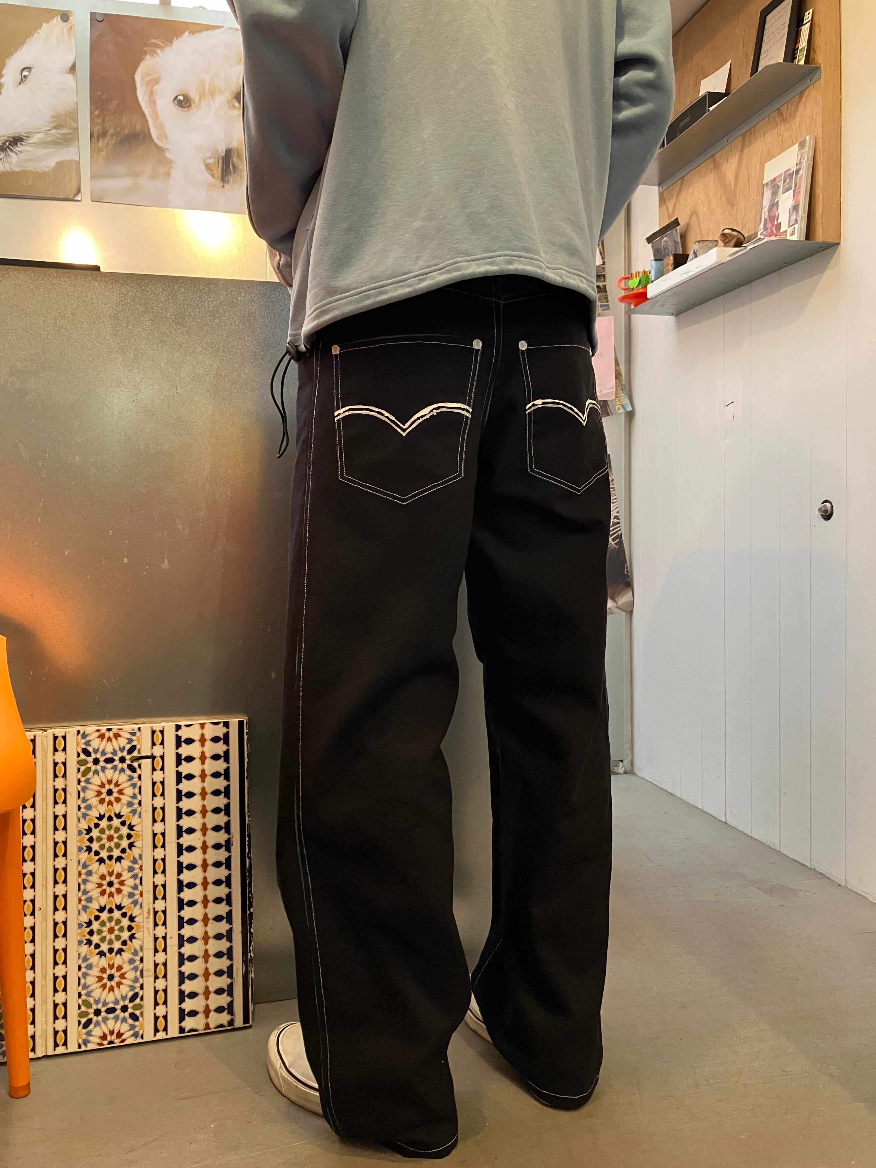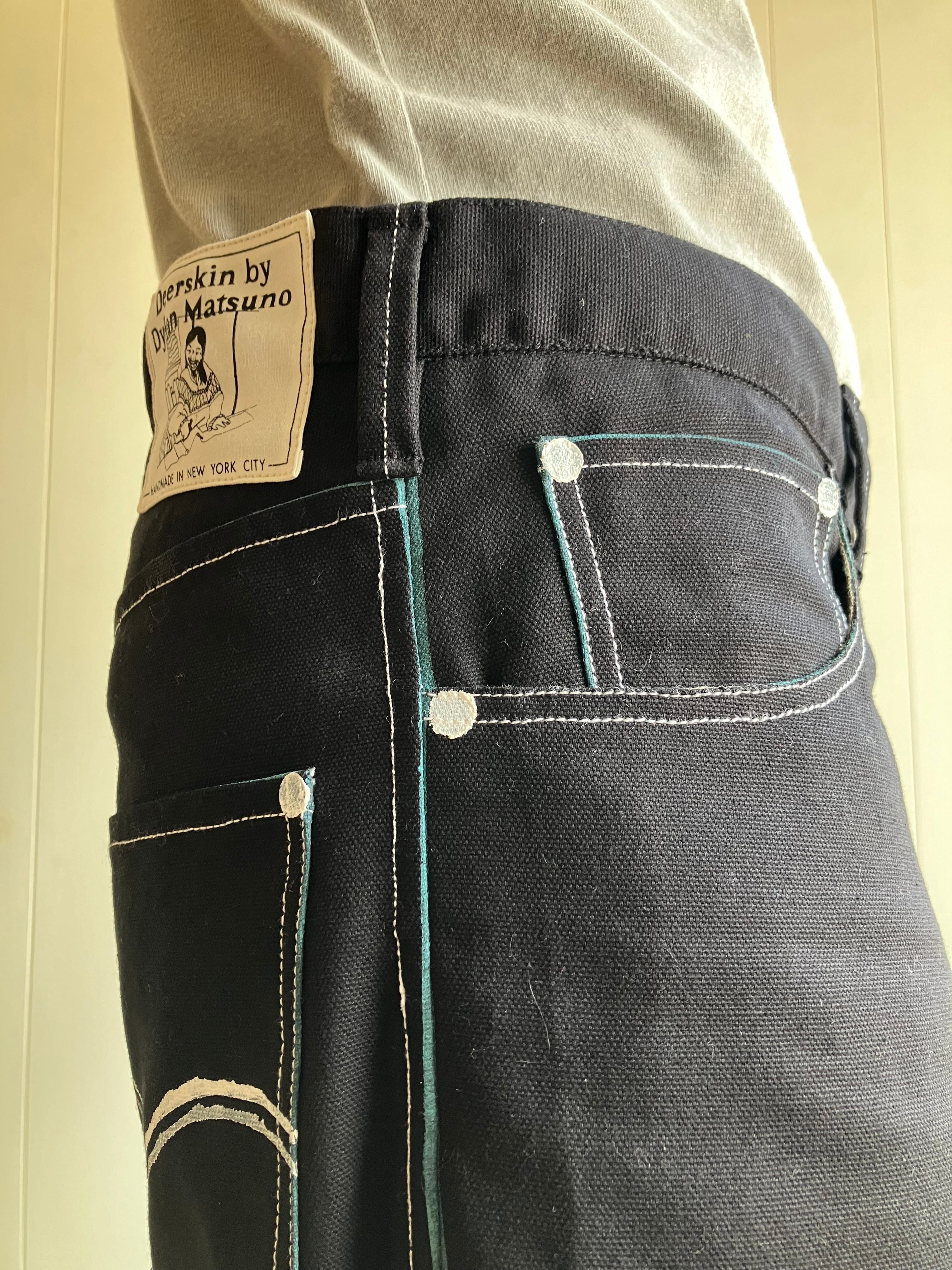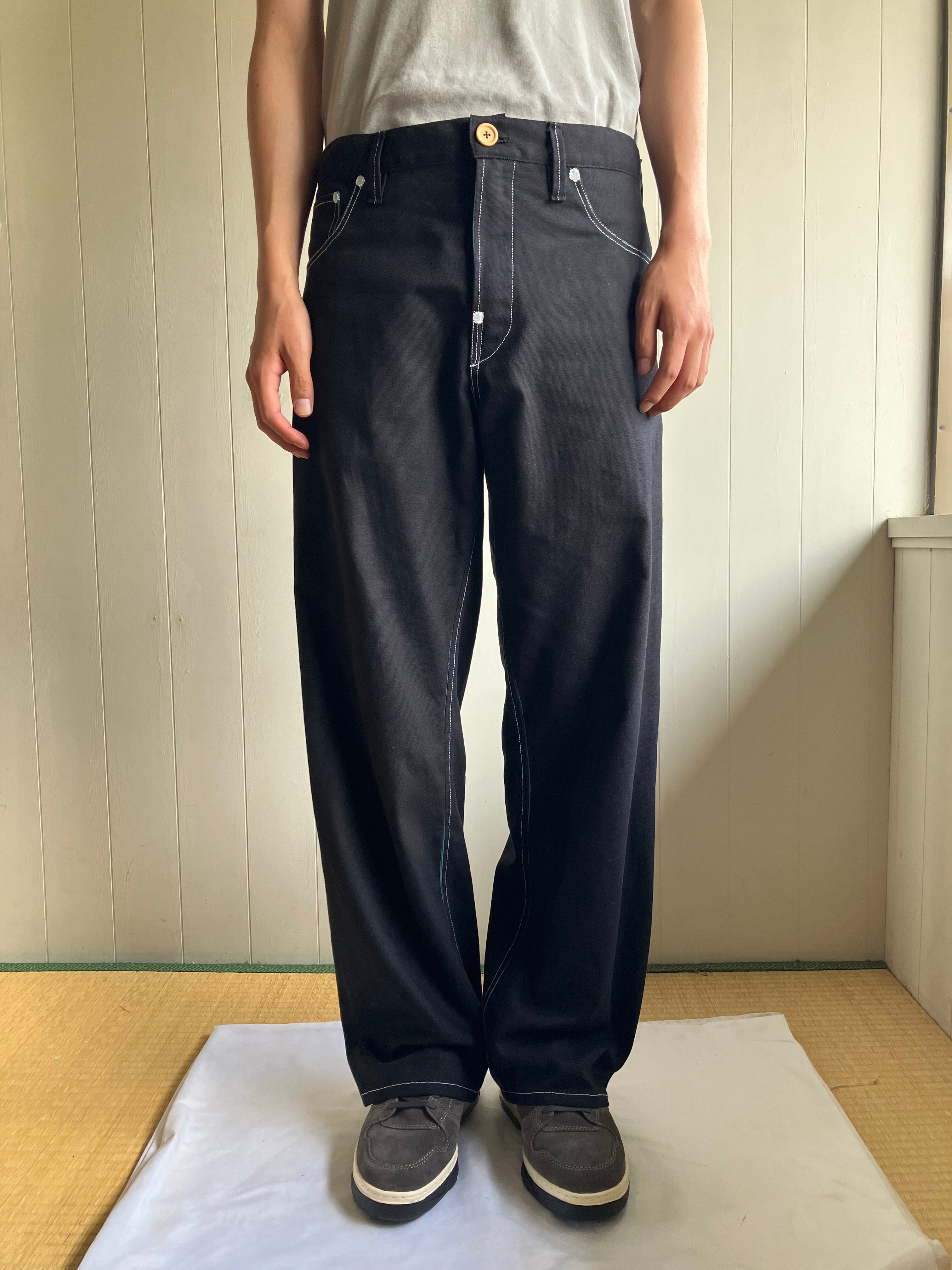 NYのアーティストJoshua Abelowによる実際の抽象画からインスパイアされたアイテム。各パーツの縫い代にはペイントが施され、重なる部分からは所々色が露出しています。Joshua Abelowの製作プロセスを模倣して洋服を作る実験的な手法をとりました。本人が描く抽象画のように複雑な色のレイヤーが表現されています。