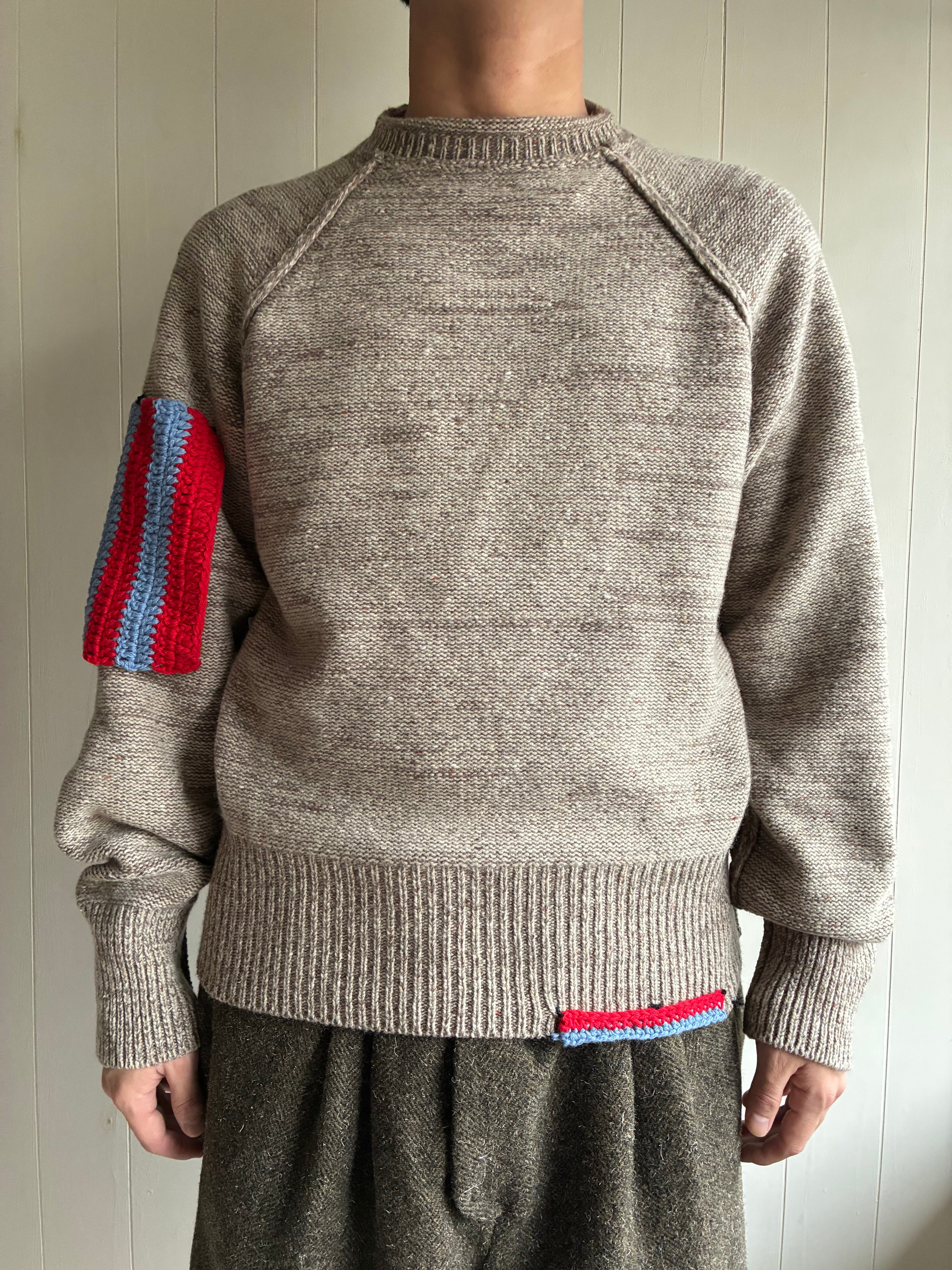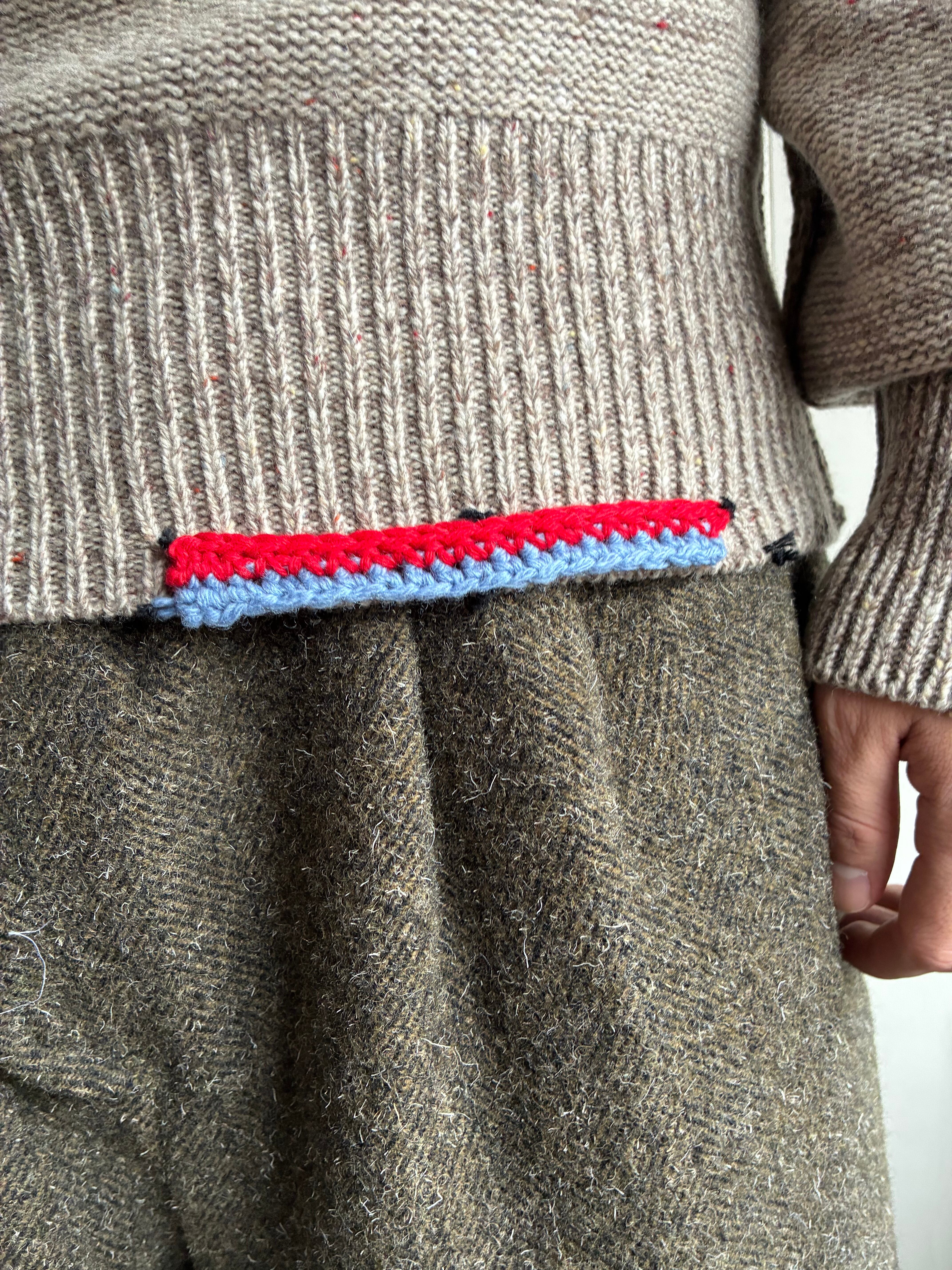 ウールカシミアのリバーシブルプルオーバーニット。裏面にすることでポケットが表に現れます。ロールネックのリブも印象的です。