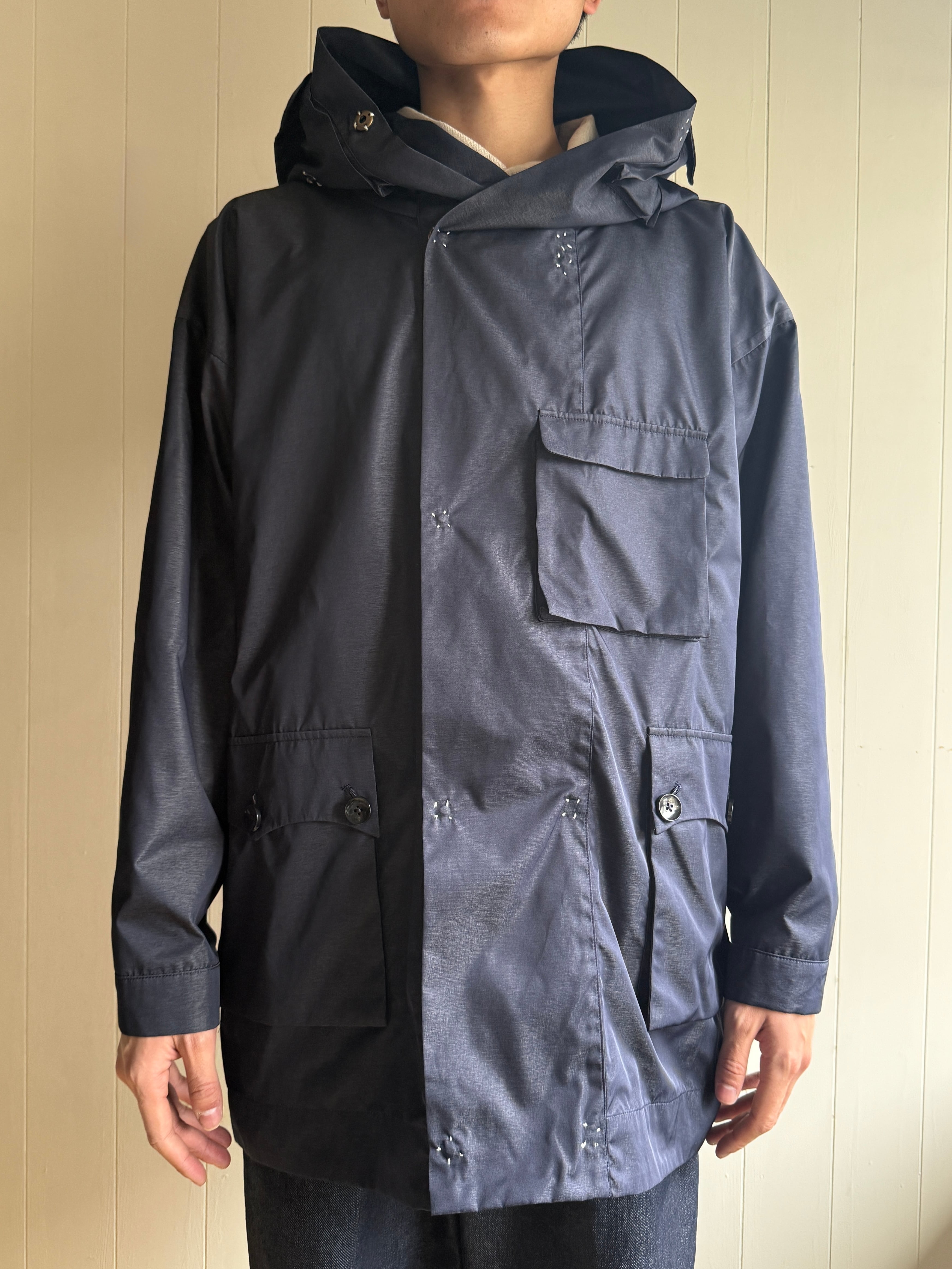 デザイナー曰く、今までも布帛でフーディやフーディジャケットを作ってきましたが、oiraのフーディコートとして腑に落ちるものができたらしいです。